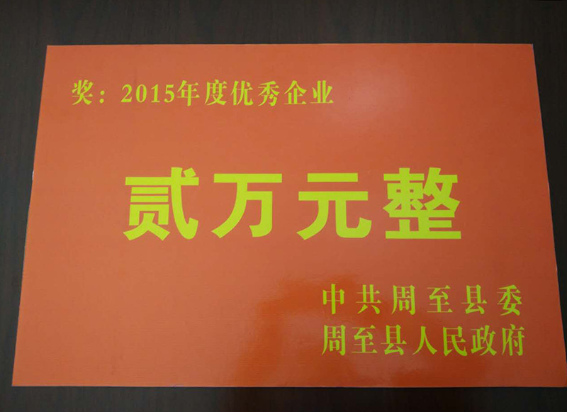 陜西建木環保建材有限公司榮獲:中共周至縣委、縣政府2015年度目標責任考核優秀企業稱號,獎勵人民幣貳萬元.